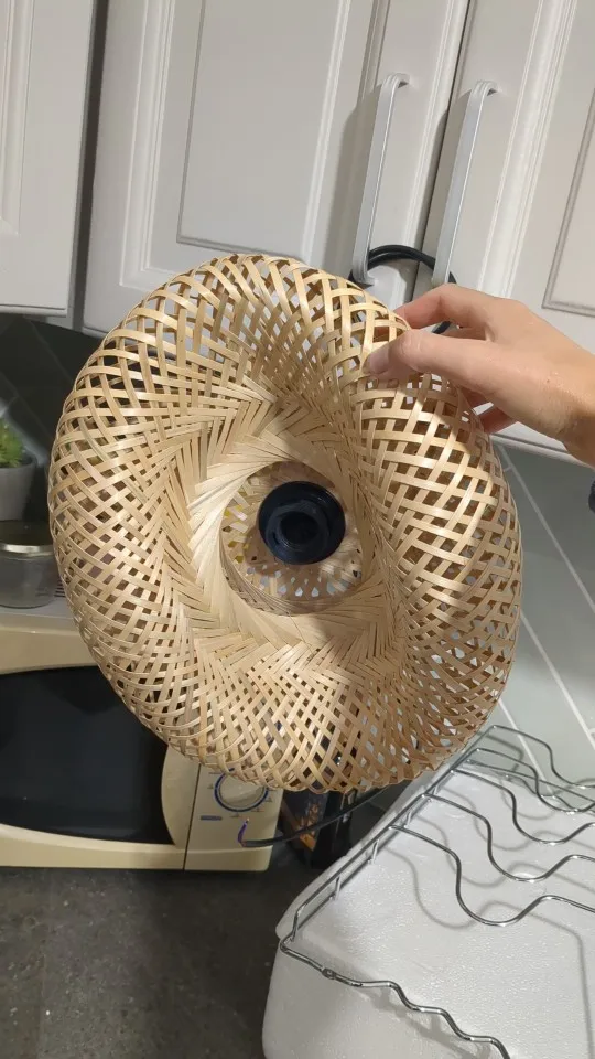 Give your home a warm natural glow with this hand-woven bamboo rattan ceiling lamp. Its airy wicker design creates beautiful light patterns, making it perfect for dining rooms, bedrooms, living spaces, or cafés. A stylish blend of craftsmanship and modern lighting.