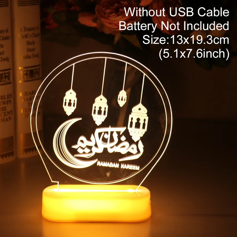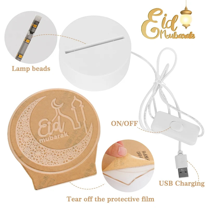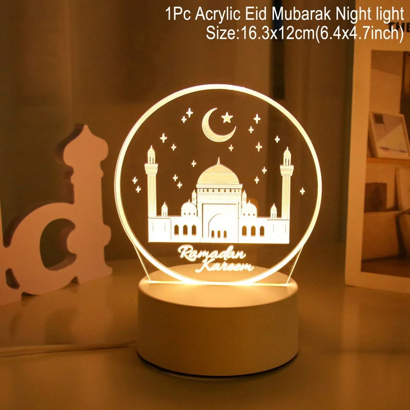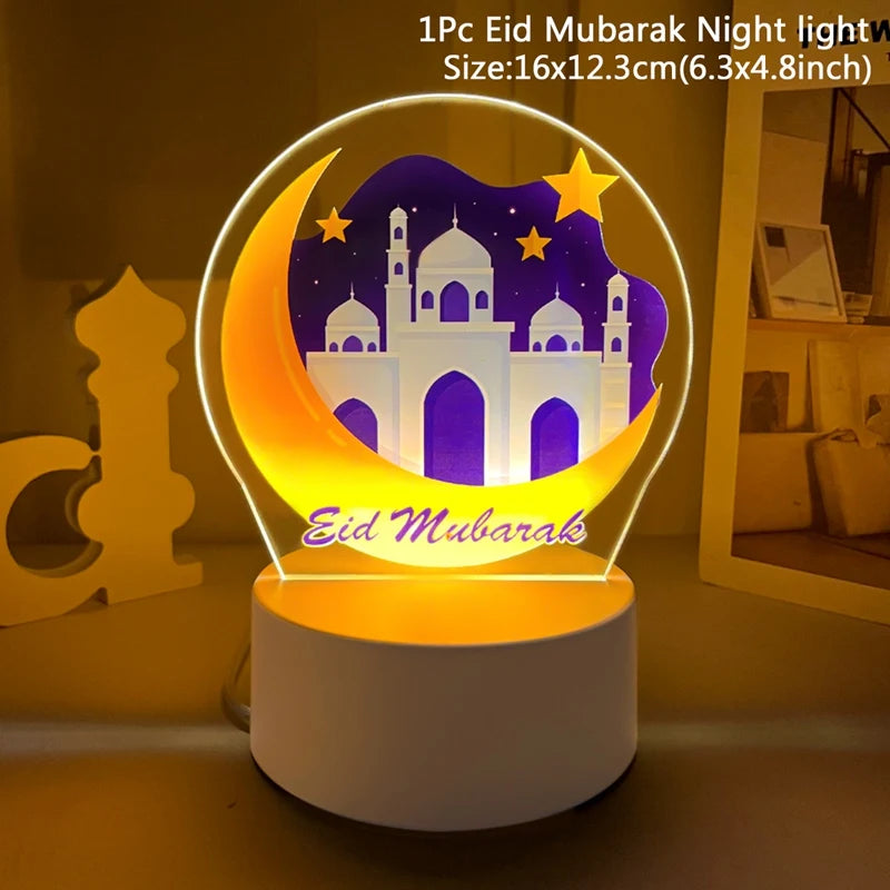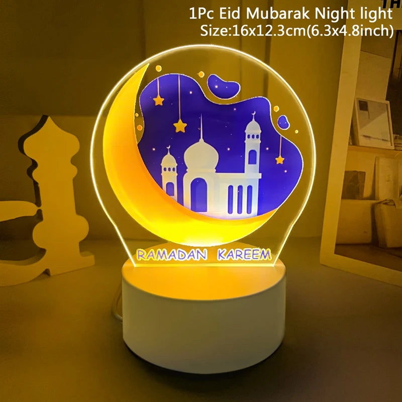 Celebrate Eid in style with this festive acrylic ornament light. Perfect for home décor, Ramadan Kareem, Eid Al-Adha, or Islamic party celebrations, adding a warm and joyful glow.