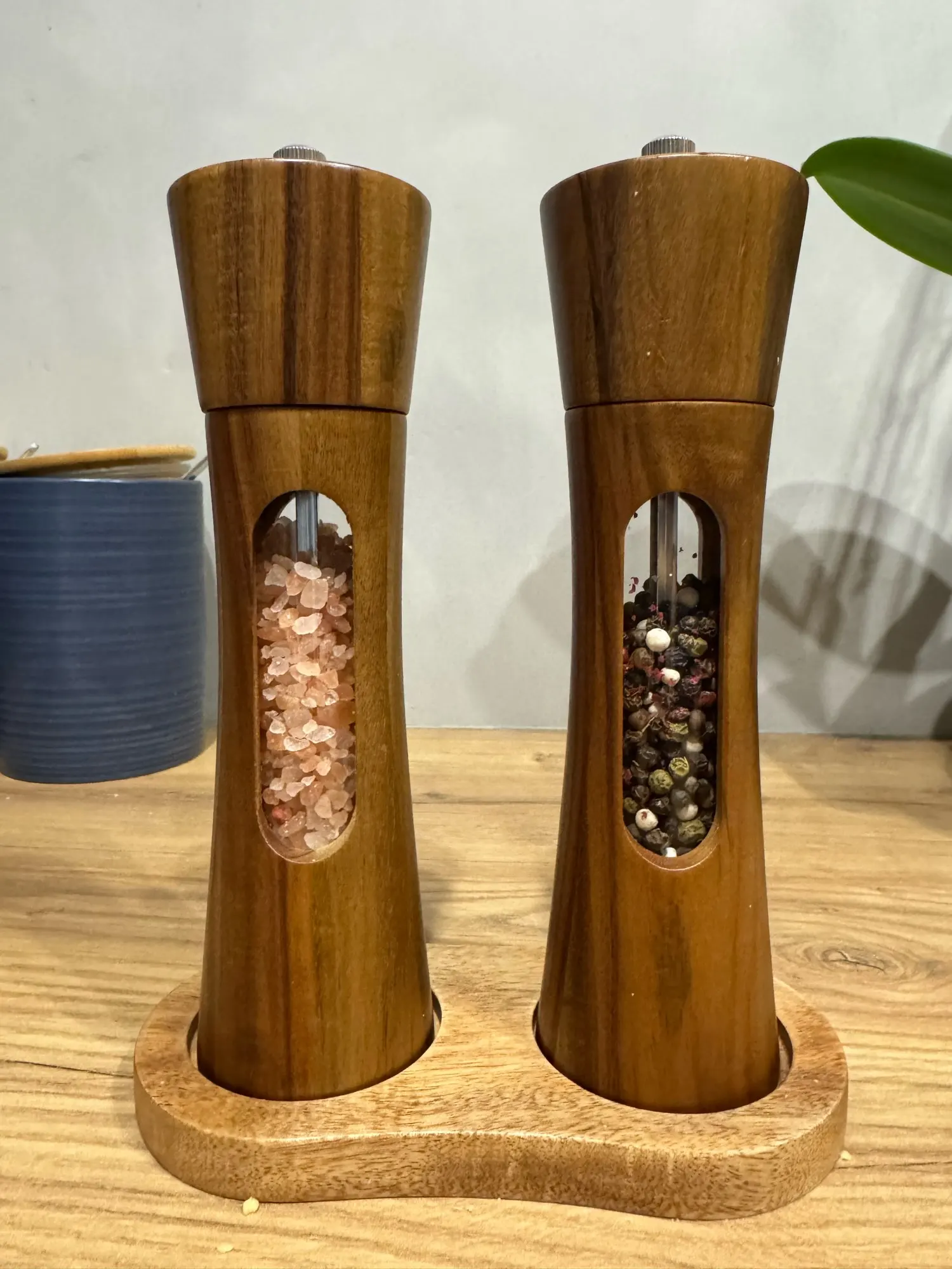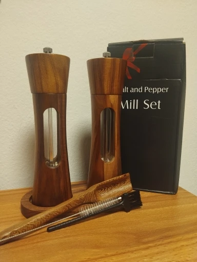 Manual wooden salt and pepper grinder with adjustable coarseness and large capacity. Perfect for kitchen use, cooking, and seasoning your favorite dishes with ease.