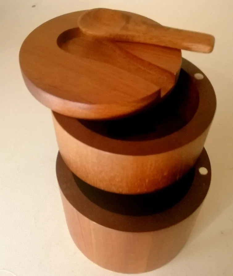 Keep your salt fresh and accessible with this acacia wood salt cellar featuring a swivel lid and convenient spoon. Stylish and practical, perfect for any kitchen or dining setup.